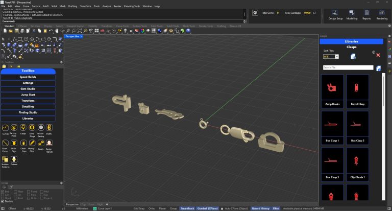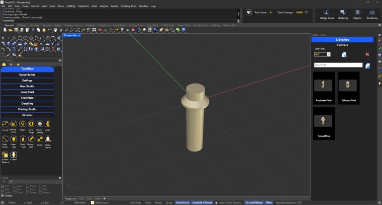 Gem view allows you to choose a gem and it is placed in the center with the Construction Plane aligned to the gem.